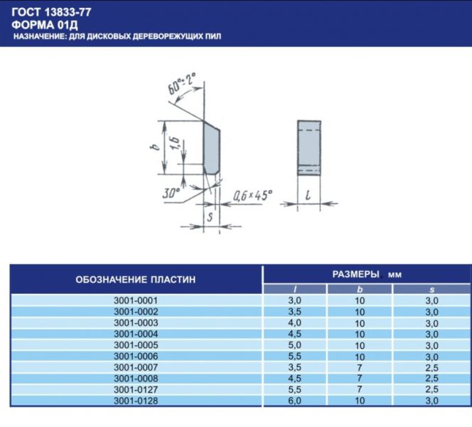 Płytka z węglika spiekanego dla pił tarczowych, w tabeli podany rozmiar .Po więcej informacji proszę kontaktować się telefonicznie lub mail