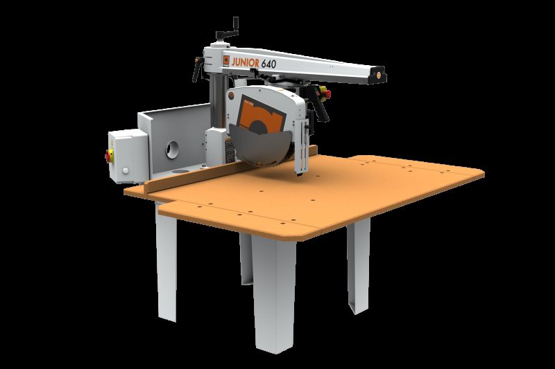 MAGGI JUNIOR640 Piła radialna Tnie prosto, pod kątem oraz poprzecznie płyty i deski drewniane do długości 3 m.