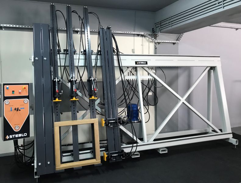 PRASA HYDRAULICZNA MONTAŻOWA TYP PMJ-H do montażu i sklejania prostokątnych elementów stolarskich tj. ram okiennych, drzwi, ram drewnianych i tapicerskich.