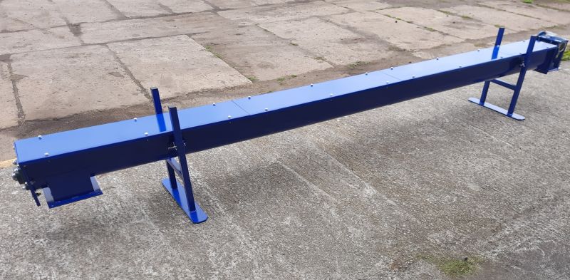 Podajnik ślimakowy do materiałów sypkich typu zboża, otręby, trociny, trociny, zrębka , jak i mokrych typu wysłodki, melasa.• Długość podajnika (robocza) – 4,2 mb,