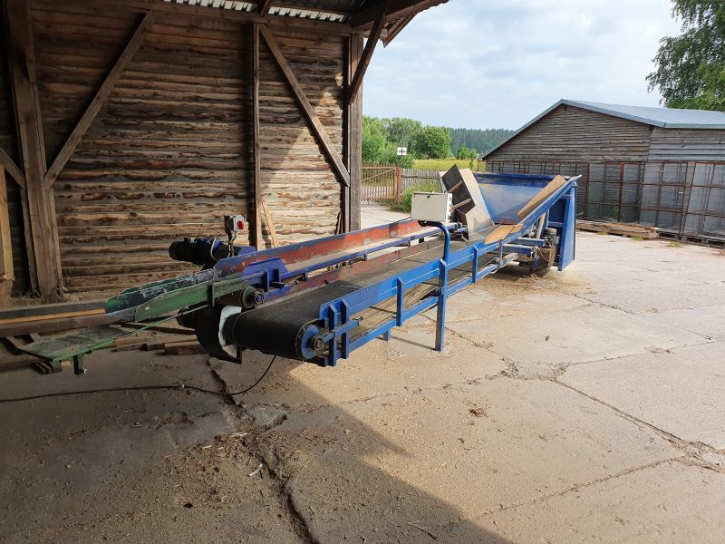 Na sprzedaż linia do sortowania i pakowania rozpałki drzewnej z koszem wysypowym z którego można wysypywać materiał z big-bagów lub skrzyniopalet po uprzednim umocowaniu, tak aby nie wypał z kosza.Linia posiada dwa oddzielne taśmociągi wąski (górny) o długości 4 metry i szerokości 20 cm oraz szeroki (dolny) o długości 6,2 metra i szerokości 49 cm.