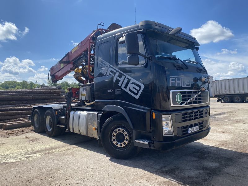 Volvo posiada na sobie dźwig do załadunku drewna okràgłego top producenta żurawi leśnych loglift . W zestawie jest również pierwsza kłonicą zaraz za dźwigiem .