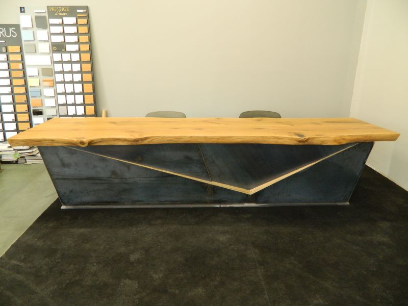 Do sprzedania lity dębowy stół biurowy, konferencyjny, do salonu sprzedaży, sala wykładowa, blat wykonany z litego dębu, podstawa slal naturalna wstawki dębowe, blat grubości 8cm wykończenie czarna szpachla, lakier. Długość 3,30m, szerokość 0.85m-0,90m - krawędzie boczne naturalne (nieregularne), wysokość 76cm, stół nowy z ekspozycji bez żadnych uszkodzeń, robi wrażenie, możliwy transport (koszt paliwa), cena rynkowa ok. 13,000zł, Cena 5,200zł. nie wystawiam faktury Vat